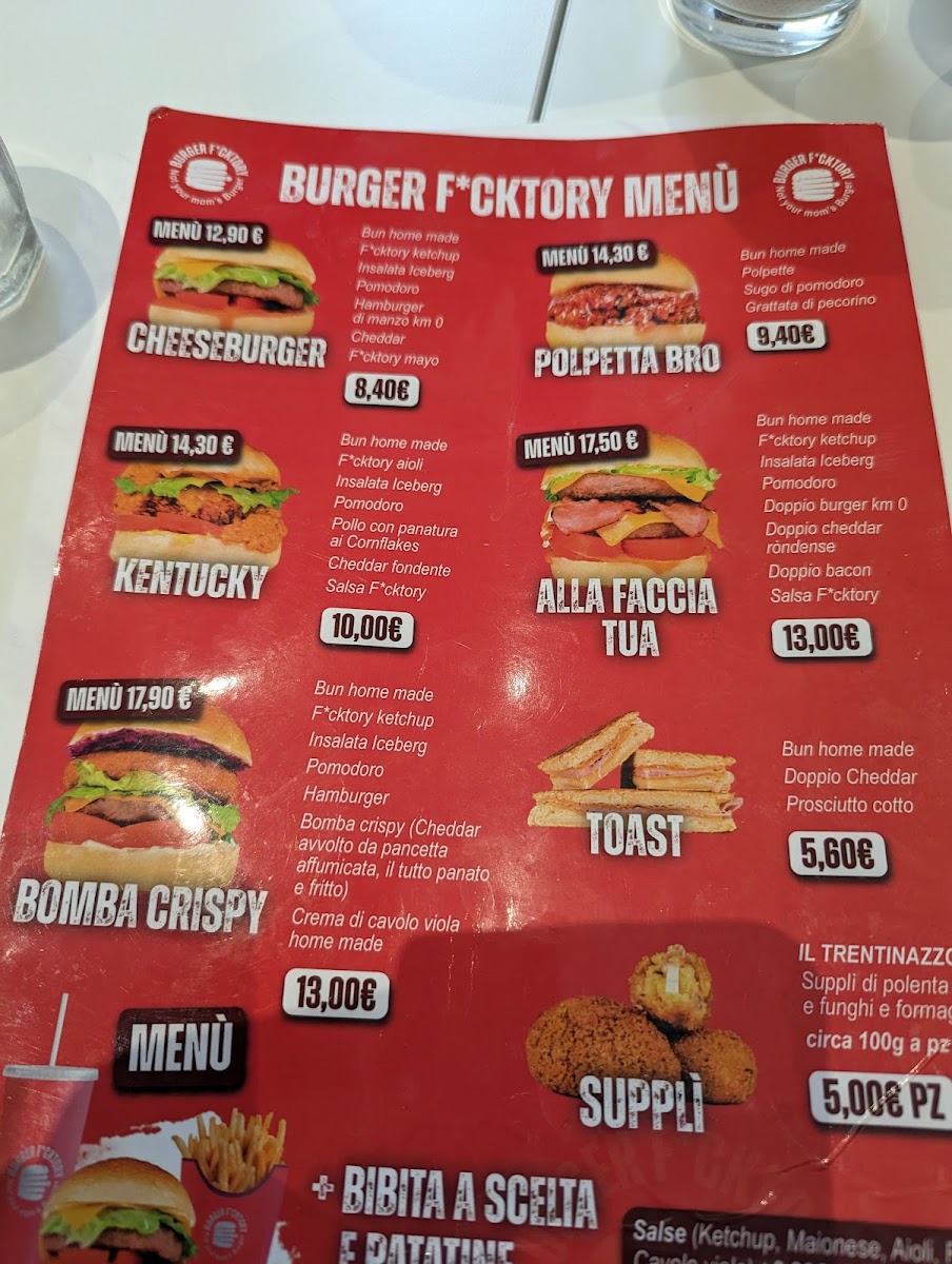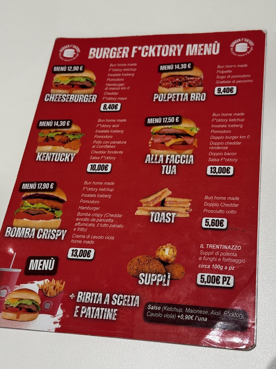 Feedback highlights the friendly staff, who make navigating the menu a breeze even for non-Italian speakers. Many recommend pairing your meal with a local craft beer, adding a unique twist to your burger experience. With mouthwatering burgers and crispy fries that leave taste buds dancing, Burger F*cktory is truly a must-visit. Whether you're a burger aficionado or just seeking something different, this spot promises satisfaction in every bite!